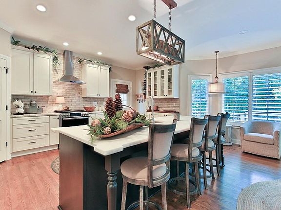 - Kitchen Features: Breakfast Bar, Eat-in Kitchen, View to Family Room, Stone Counters, Kitchen Island, Pantry Walk-In, Cabinets White