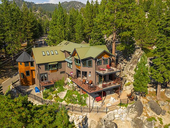 Situated high atop a massive boulder outcrop, this location offers spectacular Heavenly and lake views just minutes from Heavenly Boulder Stagecoach lodges. This mountain retreat underwent a full re-build and large expansion in 2011 which offers many unique and high-quality features. Remote-controlled skylights allow an abundance of natural light, and warm, natural finishes will make you feel right at home. The kitchen will have you cooking every night with its center island, Wolf dual oven commercial range , hammered copper farm sink, and youll be dying to entertain with the built-in granite topped bar and full-sized Sub-Zero wine fridge with two refrigerator drawers. You can even take the party outside to one of the 2 lake view decks, or the covered patio with built-in barbeque and single burner stove. Upstairs, dual master suites encompass an entire floor with features such as travertine, glass block accents, vertical grain fir trim, luxury spa showers by Ariel, cedar closets and breathtaking views. Doing laundry is a breeze with dual washers and dryers. Even using the lav is a luxury with the Toto Neorest hands-free system. With all this to offer and more, this is one home that truly has it all.When passion, perfection, family and the love of Tahoe come together, then you create the ultimate Tahoe Nevada home. UPON REQUEST