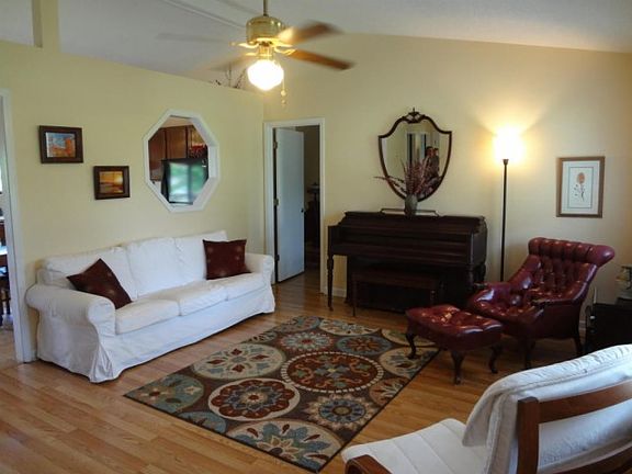 Fresh and open 3/2 basement rancher with split bedrooms on half acre. Cathedral ceiling in LR and MBR, roomy kitchen, some updates. Large fenced yard, awesome newer deck, dog kennel, add'l 576 sq ft garage for storage or workshop! Cute home on great lot with country feel.