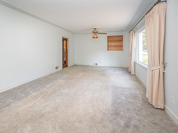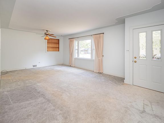 As you enter the spacious living room, note that under the carpet is hardwood flooring. The picture window lets in natural light, making it a lovely place for gatherings.
