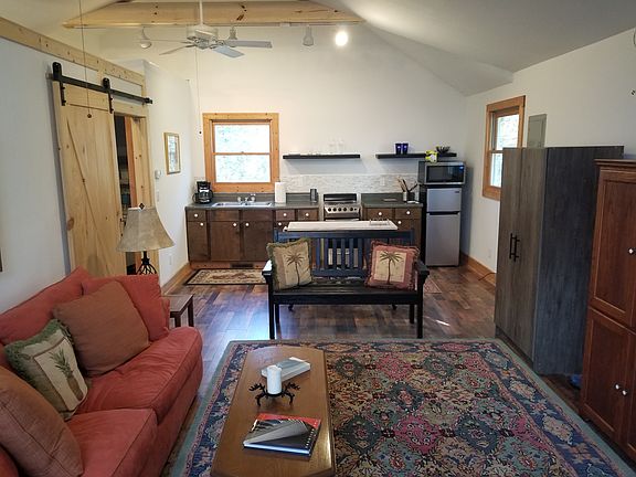 This studio apartment was an artists studio before being converted into a 1 bedroom / 1 bath studio apartment. It is a free standing structure behind the main house and includes all utilities except internet. The studio is surrounded by nature and is private. The renter will be responsible for setting up their own internet account and high speed fiber is available in the area. Renter responsible for internet service. Security deposit equal to one months rent. All other uti