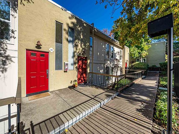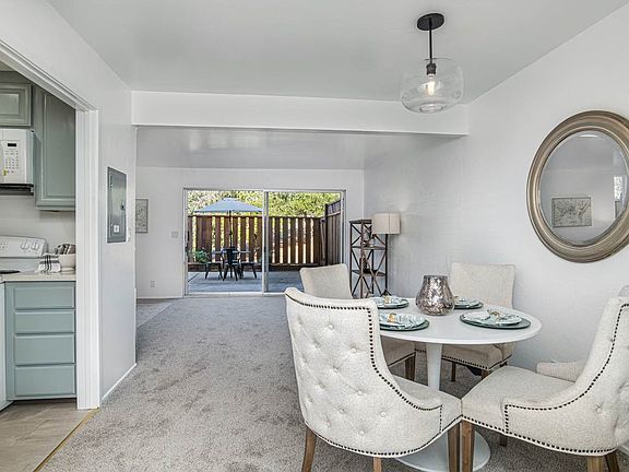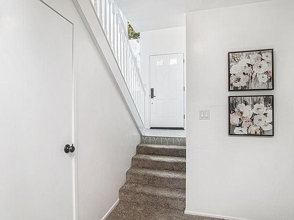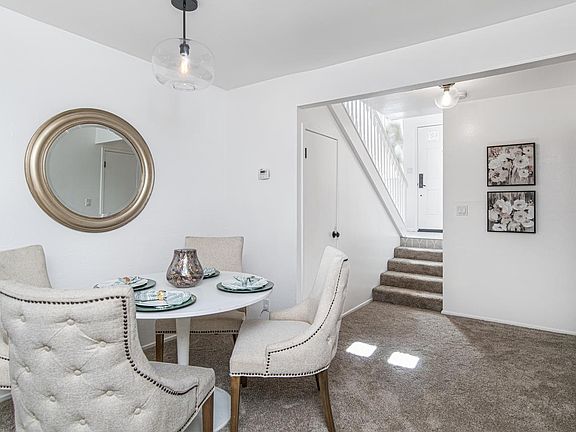 This inviting 3 bedroom, 2 bath condo in Moraga is a must-see, with updates throughout! Next to the serene pool, you'll enter through the front door and be greeted by decorative tile in the entryway. On the first floor, you'll find a spacious living room and dining area with a large sliding door to the private patio, a bedroom with a full bath, and a fresh kitchen. The kitchen features all-new appliances, quartz countertops, brand-new tile floors, and plenty of cabinets in a modern shade of soft green. Upstairs, you'll find two oversized bedrooms with lots of light, pouring in from three skylights and newer windows. One bedroom overlooks the pool and has two closets. The primary suite boasts a generous walk-in closet with built-in organizers, a full bath, an in-unit laundry area with granite countertop, and a balcony with a brand-new sliding door that looks out onto green open space. Carpet was just replaced throughout the home.
