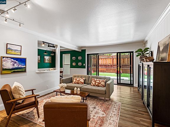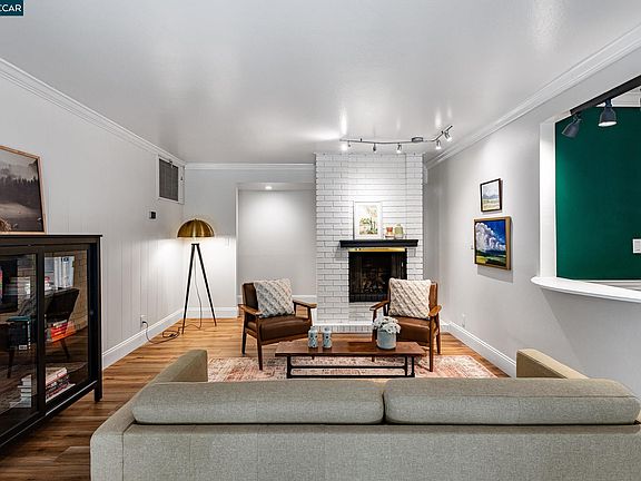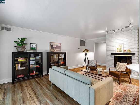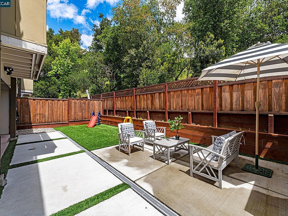 Beautifully updated Moraga condo close to shopping, parks, and great schools. Located in the back of the complex up against open space, this three bedroom two bath single level home offers a fabulous floor plan, spacious backyard and privacy. The living room with brick fireplace and dining room flow seamlessly through new Anderson sliding french doors out to a landscaped backyard with new patio and turf - the perfect spot for play, dining or lounging. The remodeled kitchen includes new stainless appliances, cabinetry, counters, flooring and water filtration system. Gorgeous luxury vinyl oak flooring throughout, in-unit laundry and stylish bathroom remodels complete this very special home. Carport with large storage closet and additional guest parking is just steps from the unit. Over $150K in upgrades.