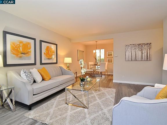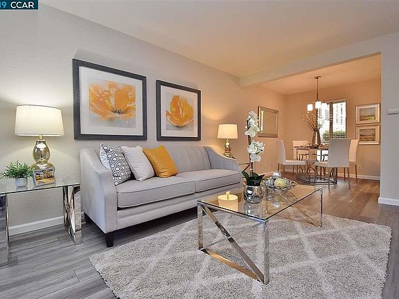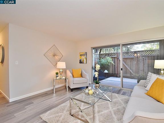 Move In Ready! This adorable ground floor condo is ready and waiting for you. Come for the community, quality education opportunities and the lifestyle to be enjoyed in this beautifully updated throughout condominium. This 1 bedroom, 1 bath home with 669 sq ft, has all new interior paint, flooring, light fixtures and the kitchen has new quartz counters, faucet, painted white cabinets, new hardware and all new stainless appliances and sink. The bedroom has a large walk-in closet and the bath has a shower over tub with enclosure. Living and dining area has slider to fenced private patio to relax or entertain. Covered parking space with locked storage area. Enjoy the pool as well in the warm weather.This is your turn-key opportunity to live in Moraga...don't miss it!