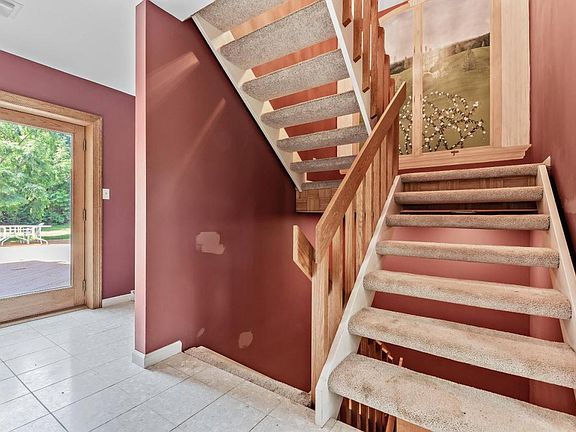 Unique is the best way to describe this five-bedroom home situated on 2 landscaped acres on the Valparaiso moraine. Circular concrete drive welcomes guests. Living room features vaulted ceiling and see through fireplace. Atrium has 17-ft ceiling and sliders lead to a huge deck and space for a 42 x 22 pool (frame is still in place, but needs new liner.) Spacious, private upper-level primary bedroom suite w/ walk-in closet and jacuzzi, shower, and double sink in the bath. Stairs on either end of home conveniently lead to the upper level. Large Kitchen updated in 2014 w/ many oak cabinets quartz counters. Spacious dining room accommodates any gathering. Large rec room w/ pool table in basement. Home offers many areas for storage. Energy efficient with double exterior walls. Attached 3-car heated garage w/ storage as well as detached 1.5 car heated garage. Beautiful landscaping w/ lighting illumination. Roof, furnace and a/c updated in 2014. Sellers providing $850 AHS Home Warranty.