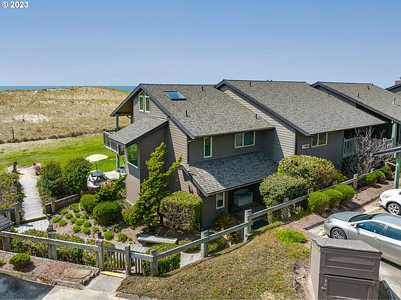 OCEANFRONT Townhouse in Premier Breakers Point Community in Cannon Beach. Out your door & directly onto the beach! Nice end unit with views. Boasting 3 bedrooms + loft for additional sleeping spaces + 2.5 bathrooms. Spacious main level deck off the living area, as well as another ocean facing deck off the Primary bedroom. Covered, and protected, front porch as well for extra outdoor spaces. Club house offers on-site management, meeting/party room, State of the Art indoor tennis/pickle ball & basketball courts, indoor swimming pool, outdoor hot tub, exercise room & guest apartment. Rare opportunity to own a Townhouse in Breakers Point! Enjoy the quiet, serene north end of town where the beach is many times just yours & Crescent Beach is a hidden treat.