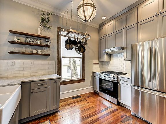 Bird's Eye Bungalow! A Rocking Chair Front Porch welcomes you into a Fully Renovated and Flowing Floorplan with Historic Details, Original Heart Pine Floors, and Stained-Glass Accents. A Parlor Entry opens to an inviting Living Room, both with Original Fireplaces. Gather in the Bright, Central Dining Room overlooking a Gorgeous Chef's Kitchen with Designer Lighting, Apron-Front Sink, Marble Countertops, Stainless Steel Appliances, and Breakfast Bar. Unwind in the Main-Level Master Suite with Spa-Style Bathroom featuring Custom Marble Shower with Dual Showerheads. A Second Spacious Bedroom enjoys a beautifully Updated Hall Bathroom with Clawfoot Tub and Subway Tile. A Mudroom with laundry extends to a Fully Fenced Backyard with Brick Patio perfect for Summer cookouts with friends and family! Amazing Location on a Tree-Lined Street ONLY 2 Blocks from Grant Park, Zoo Atlanta, and local Farmers Market. STEPS to The BeltLine and minutes from Shopping and Dining at Glenwood Park.