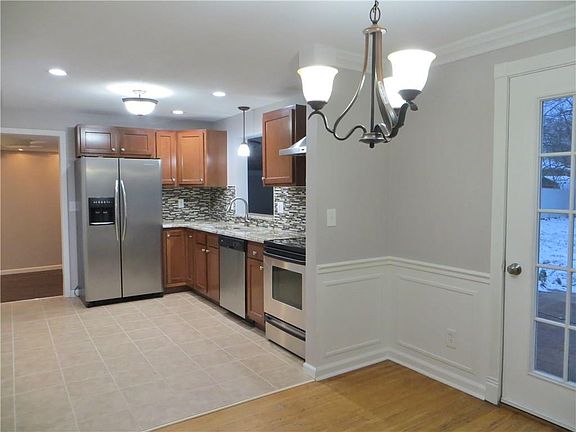 You'll love spending the holiday season in this classic 2-story home. This 3 bedrooms, 2 full bathroom, bright and beautiful colonial offers plenty of space with an eat-in kitchen, living room, family room and great room! Beautifully remodeled kitchen with new cabinets, granite counter-tops, ceramic tile, backsplash, modern lighting and stainless steel appliances included in purchase. Both baths upgraded; new vanities, flooring, lighting and tile bath/showers up. Traditional gleaming hardwood floors in several rooms. Hugh master bedroom with new wall to wall carpeting & walk in closet. Maintenance free vinyl siding, Central A/C, some new thermal insulated windows, fully fenced yard, double wide driveway & backyard patio. You will find updates galore through-out the house!