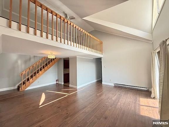 Riverside- Riverfront beautiful 2 Bedroom, 2 Bath, and 1 large loft Condo situated in a spacious, top-level end unit with w/breathtaking Riverfront views, sunlight throughout. Large bright Living Room w/soaring Cathedral Ceiling. Glass slider door opens to your private balcony. Formal dining, upgraded Kitchen with plenty of cabinet storage. King Size Master Suite w/3 large closets, upgraded ensuite bath, second bedroom, 2nd bathroom, and laundry room with storage. The 2nd floor has a large loft space. Extra closet spaces throughout. Beautiful hardwood floors. Wall A/C's. Pre-wired for FIOS. Each room has its own heating zone. One assigned parking space #228 and other extra non-assigned parking spaces are available. Minutes to NYC transit, a Commuter's Delight! A small pet is ok. Credit check and proof of income required. (Listing 3314843 Confirmed 9/4/2025)
