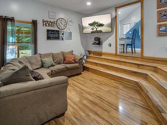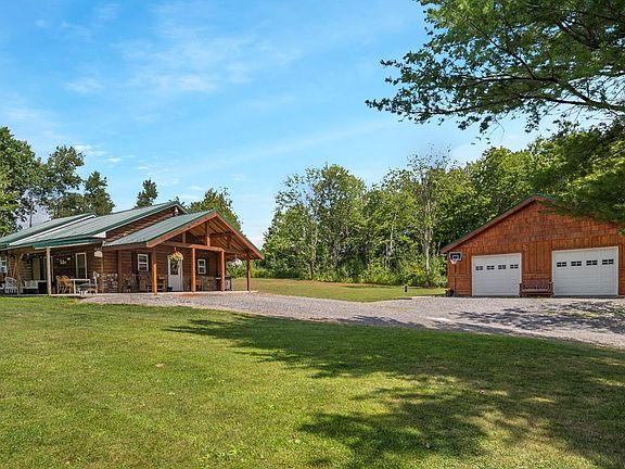 Cozy cabin like home tucked away on a peaceful and partially wooded 10 acre lot just outside of town! Notice the slate tile floor that runs through the main entry and discover 2 cozy bedrooms, living room, and office nook! Step up into the dining room and be wowed by the gorgeous kitchen tastefully updated with quartz countertops, diamond cabinets, stainless steel appliances, panty, wood grain tiled floor throughout, and beautiful exposed wood beam ceiling make this a foodies paradise! Main level also includes bathroom and primary loft bedroom with walk-in closet. Appreciate the in floor radiant heat throughout this home and take advantage of the full partially finished basement for extra storage! Kick your feet up and enjoy the wrap around covered patio perfect for entertaining and avoid the weather with the 2 car garage with flexible space for a workshop!