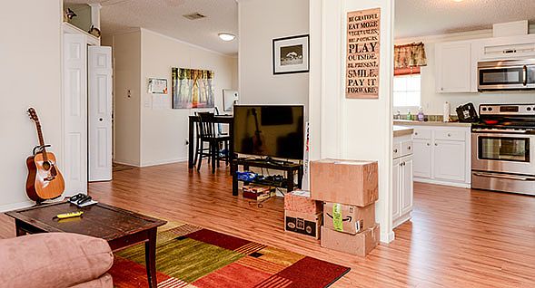 Location, location, location! 'Saffron Cottage Parkside' is a wonderful newer model four bedroom (or 3+ Den) home which backs up to a large park located on the lake. Homes in this neighborhood have recently sold for over $100,000 making "Saffron Cottage" a veritable bargain! From the curb, the home is as pretty as a picture with its beige and white exterior walls, decorative shutters and a large covered carport. Lush landscaping, including mature palms and flowering shrub borders along the exterior walls add to its charm. The home follows an open plan design in its living, dining and kitchen space with thoughtful partitions helping to maintain privacy without cutting out the natural light and airiness of the large space. The living and dining section has hardwood laminate flooring and an elegant chandelier fan that adds old-world charm. The entranceway to the kitchen has two narrow partition walls at either side that partially hide away the kitchen from direct views from the living area a convenient feature while entertaining guests. The kitchen is bright and airy with ample natural light invited in through a mini-blind treated window in front of the sink. It has a separate laundry area tucked away in a recess at the far corner, while another door near the entranceway leads to a box-room, which can double up as a closed pantry perfect for additional storage. Maintenance-free vinyl flooring is another convenient feature of the kitchen. White kitchen cabinets provide ample storage. The kitchen also comes with essential modern appliances, including a microwave oven, a side-by-side refrigerator with door-through ice, smooth-top range, and dishwasher. Additionally, the laundry area has a clothes washer and separate clothes dryer included in the price -- only three years old! The master bedroom is spacious with two mini-blind treated windows inviting in natural light and presenting views of the lush landscaping outdoors. The ensuite bath is large with a full-size tub and a long built-in counter top sink with separate his & hers basins and storage cabinets underneath. The paneled vertical sliding window near the tub invites in natural light into the bath, adding a refreshing feel. And, like all homes in this lovely lakeside community, you will enjoy central air and heat, off-street covered parking, your own outdoor storage shed, shingle roof, lovely landscaping with professional sprinkler system, and access to the community's extensive recreational amenities including fitness, tennis, basketball, clubhouse, sauna, heated pool complex, relaxation room, lake recreation and more.