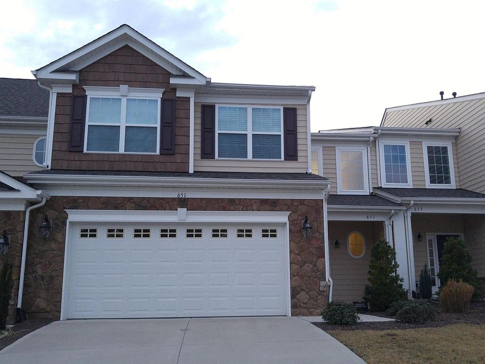 Bright and open townhome available in West Cary! Master bedroom downstairs 2 other bedrooms upstairs with a full bath and a loft. This home has hardwood floors down except in MBR. Kitchen w/upgraded maple cabinets, granite counters, stainless steel appliances, microwave vented to outside, recessed lights, Tile backsplash & pendant lights. Rails and pickets , screened in porch, raised ceiling in master bedroom, unfinished storage space! Fridge, washer and dryer included. For those who love staying active, the American Tobacco Trail is just a 10-minute walk away, ideal for biking, jogging, or a peaceful stroll. The community is designed for both relaxation and recreation, featuring a swimming pool, clubhouse, playground, and a volleyball sand court. With Harris Teeter and Publix only a 5-minute driveaway, you'll have all the convenience of shopping and dining just moments from your doorstep.. Available Mid September 2025