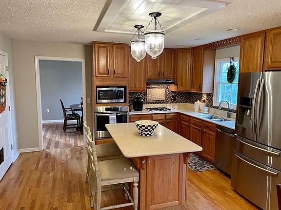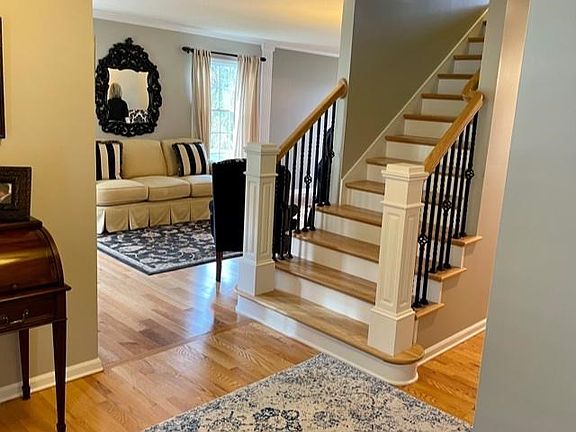 This home is fabulous! Hardwood floors throughout main and upper floors. Updated kitchen with island. 2 Family Rooms - one off from kitchen on MAIN level with upper deck access - other FR is in lower level with surround sound - along with bar and refrigerator & full bedroom and bath. Access from lower level to slate covered patio with river rock landscaping. Fireplace in each family room with built in book cases (one is gas - one is electric). Entertaining is easy in this lovely home.