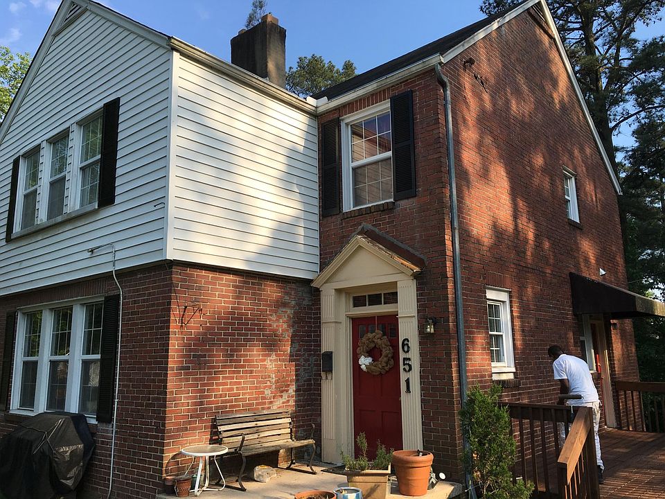 PETS WELCOME! Rare large two-bedroom apartment in Trinity Park neighborhood. The apartment is the upstairs unit (built to be a duplex with separate entrance) of a two-unit duplex. It has a spacious living room with multiple large windows, hardwood floors, two bedrooms, a big entrance hall that can host a table, and a kitchen with a laundry area. Central HVAC new in 2015 and washer and dryer included. Modern appliances. Old-fashioned bathroom with lots of charm. The best part is the location though - a reasonable walk to downtown or Duke East Campus, within sight of the dog paths and bike paths of Ellerby Creek Trail. In addition there are two more bonus rooms about 8 foot wide by 6 foot deep. They don't have closets and are not large enough for a bed, but the current residents use them as offices. These small rooms are on either side of the living room and have their own doors. One has been used as an art studio for drawinG. One bedroom has a walk in closet, and there is a big pantry in the kitchen. So there are some cool bonus spaces. Small bathroom though - about the width of the tub. In addition there is private access to a stand-up downstairs crawl space. The floor there is damp so you can't store anything that could rust or mold, but it is available for bikes. I will try to get some updated pictures, but you can get the point from these. The dark paneling has been painted white. The yard has a fenced-in area in back that might be shared with the downstairs neighbor if you meet them and can agree. The current downstairs person doesn't seem to use it, perhaps because it doesn't connect directly to any exit door. There is also a full sun section of the yard where small garden boxes could be places by some enterprising soul. Off-street parking. There is no application fee. We check two rental references - and we really do check them. We do not accept Section 8. Pets are welcome, even encouraged. We accept multiple dogs and large dogs. This is an upstairs apartment, so you can't have a dog that barks all day randomly - but any reasonable dog accepted. Cats too! Pet fee is 100 dollars per pet and that's it. If you have a dangerous breed, we can show you where to buy insurance for about 30 dollars a month. Short term lease possible. Multiple pets welcome. Priority to sept 20th start date