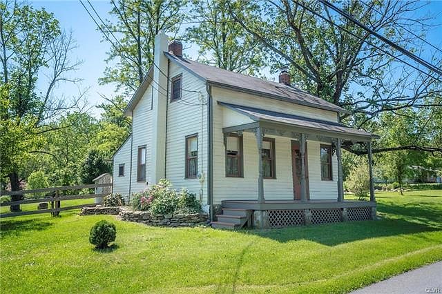 There's so much to say about this 5.59 Acre Property & 1800's Farmhouse! It's 3 generations owned, since 1930. You'll notice the Charm immediately with just the Out Buildings: Original Stone Hearth smokehouse; working Outhouse; 50x30 A-Style Barn; 24x12 Two Stall Barn/shed; Chicken coop; Shed. Ready for Horses w/ 50x100 Professionally graded Arena and 50x100 fenced Pasture. Enjoy the Pond & Landscaped gardens. The Farmhouse is 966 sq ft w/ 3 Bedrooms (1 Bdrm is on first floor) and 1 full Bath. Professionally painted. New flooring throughout. Some newer windows, but a few awesome Originals, too. Coal/wood stove heat. Nazareth School District! It could be Perfect for you as it is, or add an Addition to the Farmhouse for a growing family....Farm it....build a larger Home in the back field....subdivide into a few 1 Acre lots...have a Horse Boarding/ training business (zoning approval always needed of course). The list is endless! This unique spot could be your next....Home Sweet Home!!
