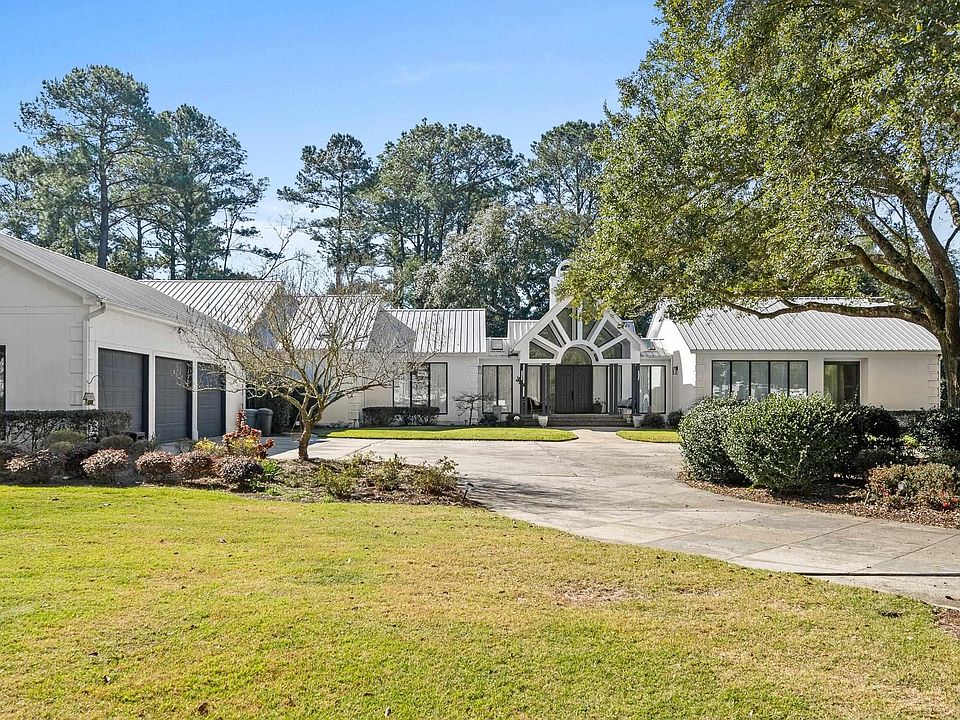 Early American Modern Architecture on this stunning home on approximately one acre beautifully landscaped golf course lot on 14th Fairway of Azalea Course. Recently updated with whole house generator, remodeled kitchen with cabinetry, tiled backsplash, appliances, and breakfast bar, exquisite primary suite and bath with garden jetted soaking tub, oversized shower, his and her water closets, loads of closet space and 22x20 bedroom with hardwood floors. This home offers a private study, vaulted living room with fireplace, 4th bedroom or craft room, oversized 3 car garage and large terrace area overlooking golf course. Buyer to verify all information during due diligence.