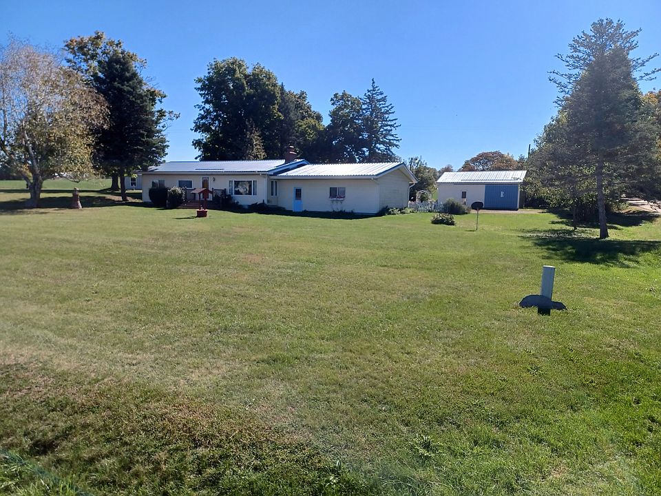 Nice Ranch Home in a Peaceful Country Setting located on a Main Rd. Home features 3 Bedrooms 1 Bath Large Living Room with New Carpet and a Brick Fireplace also a Large Window to sit and overlook the Country. Living Room has a Large Closet for storage and a Deck to sit and enjoy the View. Kitchen has handmade Birch Cabinets with a lot of storage space. As you sit in the Dining Room you may see some Deer walking in the Back Yard. Kitchen and Dining Room have newer Flooring. Bedrooms all have Wood Floors and Large Closets one of which is Cedar Lined. The Washer and Dryer were moved to the Main Level but could easily be converted back to the Basement. Bathroom has a Double Vanity and a Large Shower. Interior of House has new paint. Full Basement that could be Finished. Attached 2.5 Car Garage. Has a 26x30 Insulated Workshop with Cement Floor and could be easily heated. House and Pole Barn have a New Metal Roof and Siding 3 Years old. Home was built and 0wned by the Original Family. Take a look and make this House your Home and enjoy the Nice Yard and relax under the Shade Trees. Easy to Show.