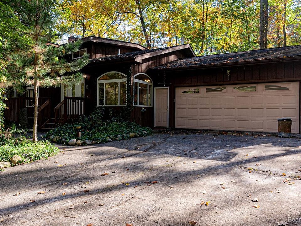 Breathtaking Four Bedroom, 2.5 Bath Custom Built Contemporary Home Designed by Former EMU Art Department Head on Secluded 1.97 Acre Surrounded by Trees and Wildlife. Light Filled Living Room with Vaulted Ceiling, Hardwood Floor, Two Skylights and Gas Fireplace. Jaw Dropping Great Room with 30 Foot Ceiling, Wall of Windows Overlooking Private Backyard, Natural Fireplace with Barn Wood Mantel, Mantel to Ceiling Brick and Circular Open Staircase Leading to 2nd Level. Massive Master Bedroom Retreat with Hardwood Floor, Fireplace and Gigantic Walk-in Closet. Brand New Master Bath features Walk-in Shower, Jetted Tub, Tile Floor. Finished Walkout Lower Level adds 2000 square feet of Living Space and has Two Bedrooms, Two Living Rooms, Updated Full Bath, Workshop Area. 24x32 Stick Built Outbuilding with Cement Floor and 12x24 Office Space Area. Appealing Kitchen with Raised Panel Oak Cabinets, New Floor, Breakfast Bar and Overlooks Butler's Pantry and Living Room. French Doors lead to 14x14 Three Season Room with Hot Tub with Panoramic Views of the Private Backyard. Additional Features include Wrap Around Deck, 2.5 Car Attached Garage, Central Air. You Even get a Salvaged Safe from Old Ypsilanti Post Office!!