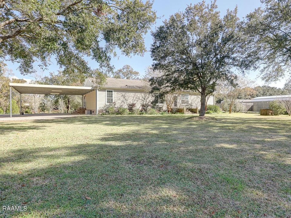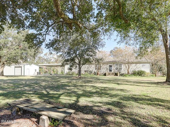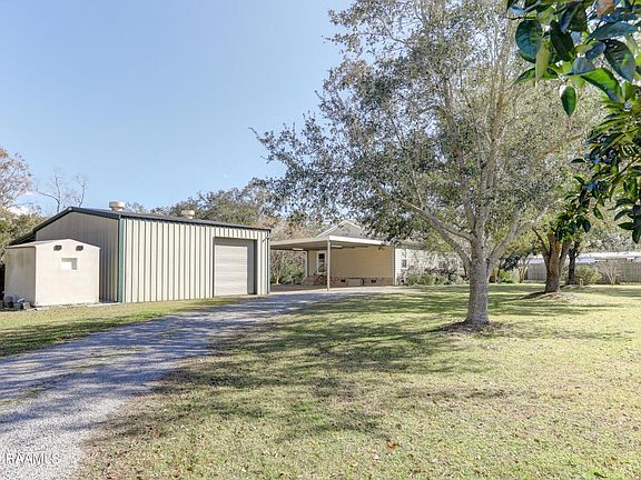 RARE FIND! Gorgeous 1.41acres on Bayou Teche with mature trees, fruit trees, and beautifully landscaped. This property is well maintained inside and out. It is completely surrounded with fencing and has a remote controlled gate (though it is a very safe, close net community). Huge slate tiled, covered patio, brick skirting and brick steps at the 3 entrances. Exterior amenities also include: 30x30 storage building with garage doors and storage loft, 30KW generator, Safe house/shed, outdoor sink, freezer, back up water well, garden, garden shed, removable hurricane shutters, and much more.