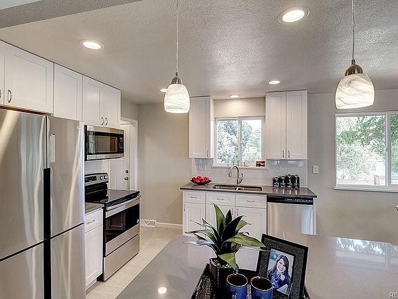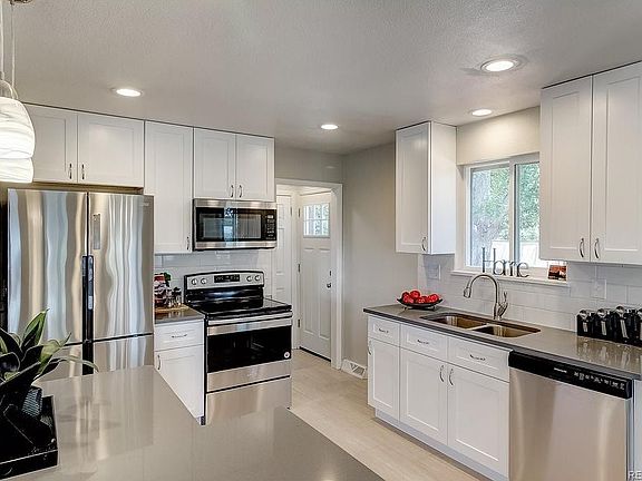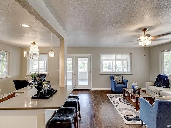 Stunning Arvada home on over 1/4 acre. This is one you will not want to miss! Location is amazing only a few short blocks from the new G Line and less than 1 mile from Downtown Arvada. This home boasts a well designed floor plan with indoor/outdoor living. As you enter you are greeted by a large family room, flooded with natural light, that flows nicely and directly into the kitchen. An entertainers delight! Hardwood floors throughout the entire upstairs area. Within the updated kitchen you will find stainless appliances and stunning quartz counter tops. New updated bathrooms with high end designer finishes are sure to impress. New roof with many other updates make this a true move in ready home. The Lower living area was designed with comfort and functionality in mind. The large laundry is found in the Lower level and is bright and welcoming room. Direct access from the lower level to the extra deep garage (allowing for ample storage or a work shop area). Lot has large mature trees.