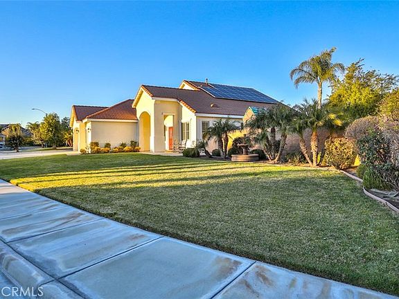Check out this entertainer’s dream in Eastvale! It starts with great curb appeal with a blend of Mediterranean and craftsman influences. The French-door entry, high ceilings, and abundant natural light in the living room give a warm welcome, and the large upstairs family room/loft is perfect for a home theater, game room, or other hangout space. The warm welcome continues in the dining room with a gas fireplace and custom leaded-glass windows. The plantation shutters give a classy feel throughout the home. Cook up a great meal in the large kitchen with walk-in pantry and enjoy it at the breakfast bar, in the dining room, or out on the solid wood covered patio. You’ll love having so much room on the granite counters for prepping and serving food and storing your favorite kitchen gadgets. The primary bedroom features an en-suite bathroom with dual sinks and separate tub and shower. It also has a large walk-in closet with organizer kits already installed. A private sliding door from the primary bedroom to the back patio makes it easy to enjoy the pool and spa. Working from home? This home includes a bonus room perfect for a home office, gym, or studio. You’ll save a ton on energy costs with a lifetime Cool Wall coating from Tex-cote on the exterior (paid 13k), a 6.5-kilowatt solar power system that will be fully paid off at closing, a whole house fan, a smart thermostat, and a smart sprinkler controller and drip irrigation. A water heater booster and hot water circulator make hot water available sooner and longer. This home is also easily accessible with one small step in and out of the house at the garage, front door, and sliding doors to the back yard and only stairs to the family room inside the house. The 3-car garage offers tons of space for vehicles, storage, and projects. Cool off in the pebble-tech pool amidst the soothing waterfall sounds and relax in the spa after a long day. Watch the game on the patio TV while grilling on the built-in BBQ with rotisserie and smoker. On top of all that, this home has one of the largest lots in the neighborhood at nearly a quarter acre and is close to 4 wonderful parks and 2 schools. Costco and the Eastvale Gateway Shopping Center are also nearby. Top all this off with a long-lasting tile roof, and you’ve got a great home for a great life! Make sure you check out the video and 3D virtual tour as well! Welcome home!