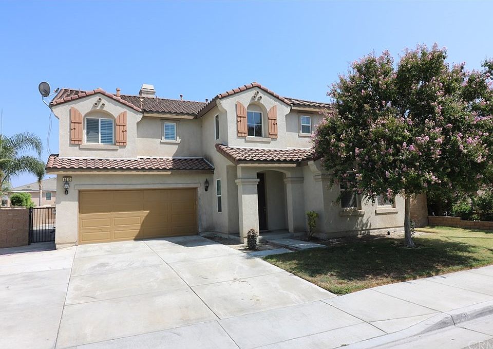 3382 Square Feet of beautiful living space. Located in the Steeplechase Community of Eastvale. Wait till you see the size of these rooms! One Bedroom and full bathroom downstairs. The gourmet kitchen is amazing and has a large center island with black granite countertops. Double oven, stove top and microwave with loads of cabinetry.. Lots of windows with shutters throughout. 4 bedrooms upstairs plus a middle bonus room (5th bedroom/Media room/Office) that has glass entry doors. Great Master room with large master bathroom with separate oval tub, shower, walk in closet. The backyard is very low maintenance with Lots of concrete. What a wonderful place for entertaining or a fun place for a children's toy playground. Walking distance to the park, and close to schools and lots of shopping!