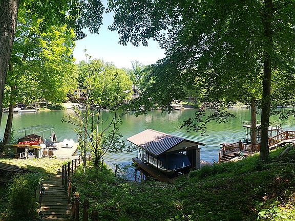 LOCATION, LOCATION, LOCATION ! 20 years ago we bought our cabin because of one main reason... well 3.. You get the point. Currently this is the ONLY home listed for sale on Party Cove (IDLE ONLY). After raising 2 kids in summer and weekends, it's time to part with our beloved lake house. Too many updates to mention, but you won't find a more affordable, solid and well maintained home in such an amazing location on the lake for this price. Rarely do homes in Party Cove get listed and when they do, they are gone fast. Three bedrooms downstairs, 1 full bath upstairs, half bath/laundry downstairs. Large great room with kitchenette. Roof and HVAC system 6 years ago. Grandfathered storage barn on the water's edge. Being sold by owner. Includes half lot. 67.5 ft of lakefront. Don't fall for a beautiful house on BAD water. As lakehomes go, great waterfront is key!!!