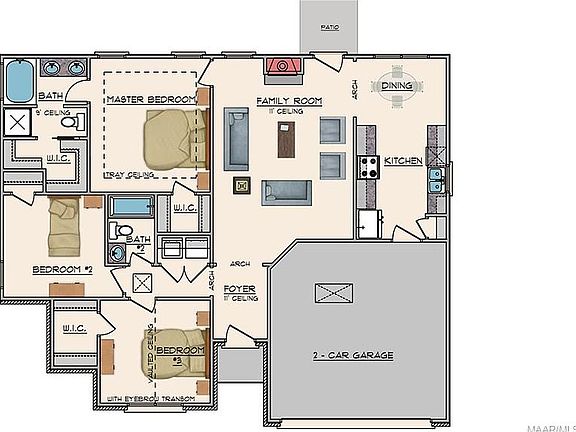 3 bedroom two bath mother in law plan. Double car garage. Located on a large cul de sac lot. Greatroom with trey ceiling and wrap around mantel on fireplce. Wired for TV over the fireplace. Frence doors leading to patio. Eat in kitchen. All bedrooms have walk in closets. Master has two. Double car garage. Foam insulation guarantees heating and will not exceed $59.00 permontg. Also our homes have media closet so cable internet and any security items are all wireless.