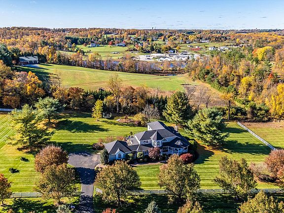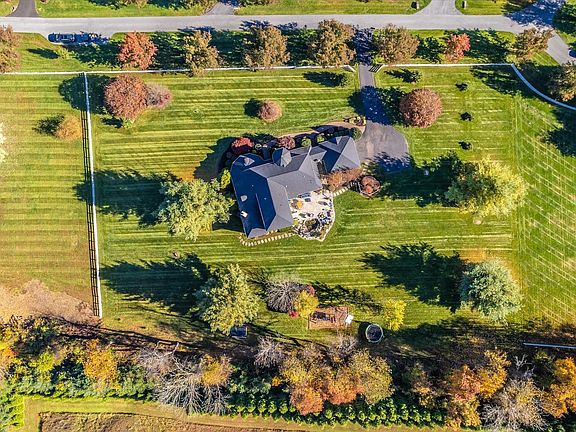 Unique opportunity to own a piece of paradise in The Paddocks! Primely situated on a lush landscaped 2.19-acre lot in a quiet cul-de-sac on a private flat lot that's hard to find and rarely available. The only model of this kind in the neighborhood this home is brimming with character inside and out. The charming wrap-around front porch welcomes you inside and is the perfect place to enjoy morning coffee and the serene surroundings. Inside the grand two-story foyer flows into the Dining Room that is graced with light-filled bow windows and accented with an angled tray ceiling. The adjoining Family room is open and spacious and features a beamed vaulted ceiling, cozy fireplace with wood burning insert, and atrium door that opens to the hospitable screened deck that overlooks the backyard. The Breakfast Room and Kitchen are right off the Family room and provide lots of space for gathering and entertaining. with friends and family. The updated kitchen features an abundance of cabinetry, wall oven, range hood, stainless appliances, farm sink, and large island for preparing your favorite meals. The sliding door in the Breakfast Room leads to the covered deck that offers another perfect place to enjoy this peaceful paradise. The finely appointed main floor owner's suite features a tray ceiling, double window with transom, and two closets including a large walk-in closet with shelving. The luxurious spa-like bath features a soaking tub, separate shower, and large vanity with dual sinks. The dedicated home office is also on the main level and features another bow window with seating and built-ins to make working from home a pleasure. There's a full bathroom across the hall in the event you want to use this room as another main floor bedroom. The laundry/mud room has an exterior door to the breezeway with access to the front and back yards and the garage. Upstairs there are 4 more generous size bedrooms all with new carpet, ample closet space and 2 full bathrooms. The finished lower level offers a spacious recreation/media room, large game room, exercise/hobby/bonus room, full bathroom, utility/storage room and a "yoga room" that is totally Zen and tranquil. Outside the oasis awaits with the sprawling flagstone patio where you can relax or entertain and enjoy s'mores around the firepit while listening to the soothing sounds of the waterfall flowing into the Koi Pond filled with colorful fish! There's also plenty of room for pets and play on this private, flat lot that backs to a 14-acre farm tucked away on this quiet cul-de-sac surrounded by gorgeous homes. Newer updates include Heat Pump 2020; kitchen appliances 2015; washer & dryer 2022; New Roof, gutters & downspouts, sump pump, and water softener in 2013; New well pump in 2016. This home has been lovingly maintained and the next fortunate owner will reap the benefits!