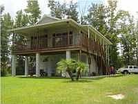GREAT VIEW from the DECK THAT OVERLOOKS BEAUTIFUL ESCAMBIA RIVER ***150' WATERFRONT**. Just look around and imagine the family gatherings, the fishing, the boating Or better yet the RELAXATION. On the 1st level which is Not included in the square footage is heated and cooled & can be finished to add additional living area, has an additional kitchen, tiled bathroom with a large shower, large laundry area with laundry chute upstairs and plenty of room for storage. Garage has automatic door opener. **BOAT launch drops to 15 feet as per owner. Also has water and electricity on the river bank plus fish cleaning area. ***On the 2ND Floor which is Open and Spacious great room, dining room and kitchen combo CORIAN COUNTER TOPS plus BREAKFAST BAR. The bathroom features 6' walk in shower with glass doors. Metal building great for equipment storage. One thing to note about the air conditioning system is the upgraded duct work which is high grade metal. ******LOCATED ON ONE OF THE HIGHEST POINTS ON ESCAMBIA RIVER.