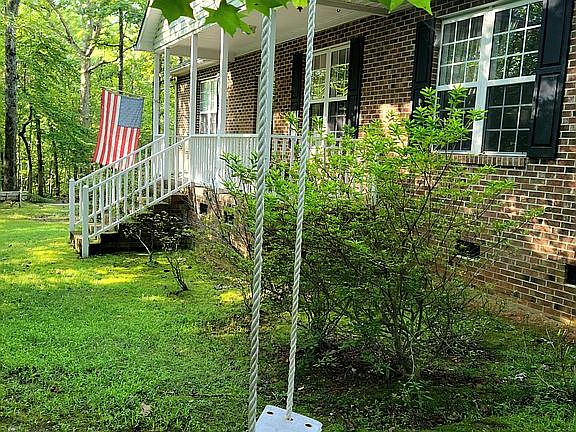 Nestled on over 6 wooded acres, this one story all brick home offers both convenience and privacy. Enjoy the sounds of nature on the rocking chair front porch or back screened porch. Interior features include laminate hardwoods, open floor plan, master bath with shower and separate garden tub, laundry room with sink and cabinets, and more! New stainless appliances and granite counter tops, The spacious detached garage is perfect for boat storage or workshop. Back side of garage features 2 live stock stalls. New gaspack in 2010. Will consider selling interior furnishing furnishings also.
