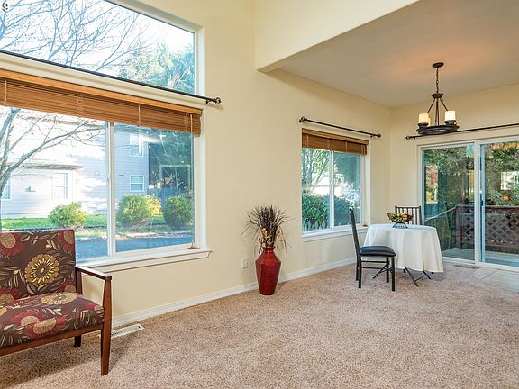 Vaulted entry & living room with lots of windows & open floor plan, on a corner lot. Kitchen with breakfast bar, stainless appliances, granite counters. Master suite with walk-in closet & bathroom. Slider to deck off dining room, plus a private, fenced backyard. Energy Score=8! Has central air conditioning and is plumbed and wired for central vacuum. Indoor laundry room with lots of storage. Easy drive to I-205 & MAX. What a great find! [Home Energy Score = 8. HES Report at https://rpt.greenbuildingregistry.com/hes/OR10137656]