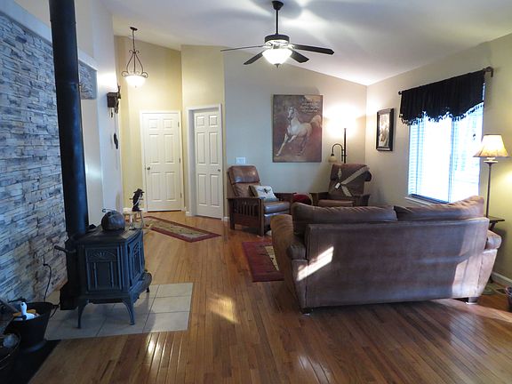 Woweeee....$20K price drop! The features of this home are unmatched! Home features wood floors, theater surround speakers, wood stove, rock accent wall, 3 car garage w/wood storage shelves, mud room w/ benches, wet bar, soaking tub, snail shower, dual shower heads, wired for generator, underground dog fence & two collars too! 5 bedrooms,3 bathrooms, & 3 living areas. Exterior has two composite decks, greenhouse, RV plug/dump, two large sheds that match the home,fire pit,deck wired for hot tub, circle drive, sand volleyball court, & trailer parking.There is new blown insulation, newer carpet, newer paint, newer windows and sliding glass doors, and newer deck. This is a great home and almost new in so many ways.