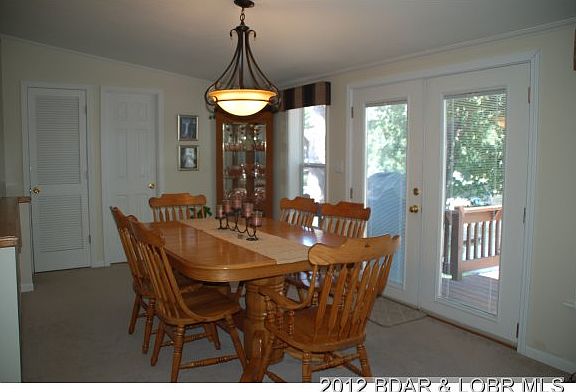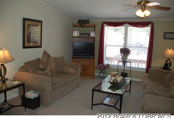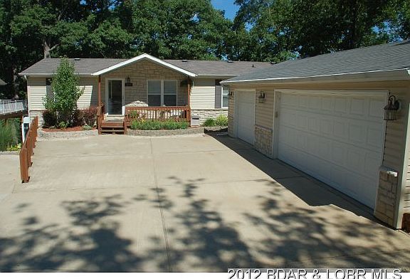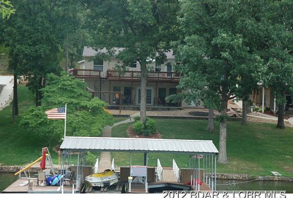 Conveniently located off popular KK in Osage Beach, the features of this property are incomparable. The open-concept style homes includes TWO living areas, large dining area, breakfast nook, custom concrete countertops, & bedrooms & baths split between the main & lower levels for privacy. Be sure to count the extra features: a waterfront lot thats very gentle on both the street & lake sides. (Thats right-NO steep drive AND just steps across the back yard to the boat dock); a three car heated garage; extra parking; large shade trees; childrens playground equipment that stays; water slide on 2 well dock w/ fresh water on dock; outside storage; fire pit; lawn irrigation; deep water; & all this in a wide cove w/ an amazing main channel view.