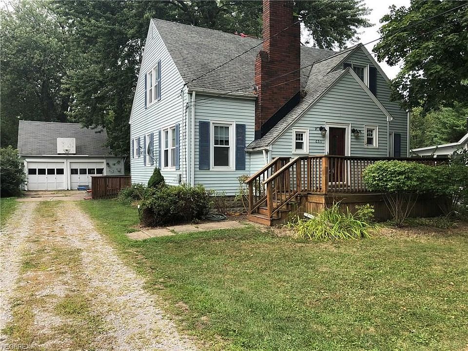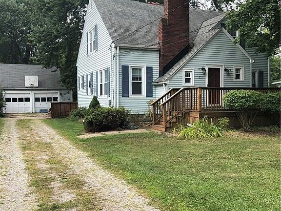 Here is your opportunity to own a roomy cape cod home on 3/4 of a acre, 3 bedrooms and 1 oversized bathroom on the main level. Kitchen was updated a few years ago. There is a first floor bedroom with a separate walk in closet. Upstairs has 2 large bedrooms with 2 closets in each room. Basement has loads of potential! New roof being put on 8/21/2018. Nice front porch. The back yard has a huge deck, with a fenced in area off the deck for your animals to play. 5 Car detached garage as well. Make this lovely home yours! Set up your appointment.