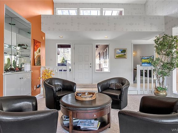 Serene, Stunning, and Spectacular, 3 words that describe this picturesque one of a kind property! Surrounded by trails to explore and stocked ponds to swim, kayak, and fish. This is the special place friends and family will never want to leave. This fantastic townhome lives like a Ranch with everything you need on one floor. A lovely large living room and open floor plan makes entertaining a breeze. The bright white kitchen is complete with a breakfast bar, top of the line appliances, and loads of counter and cabinet space. Fabulous family room and pretty powder room. The primary bedroom boasts a beautiful glamour bath, along with a gorgeous guest bedroom with its own private bath. A luxurious lower level (professionally measured) adds another 1,052' feet of sensational space to work, study, and play. Walls of windows, lovely detail and deign, soaring ceilings, and scenic views from every room. Buyers will own over 4 acres and 2 ponds, amazing activities for every season. 3rd car garage is great space as a gym and workshop. 5 min from the Village of Hamburg 20 min from the airport. Tax ID number for the additional 4 acres 144889-196-000-0001-026-110.
