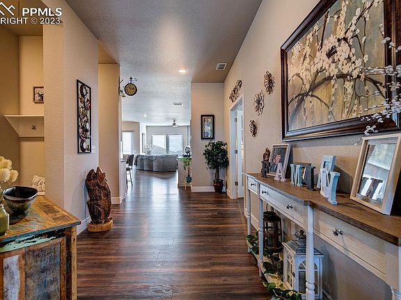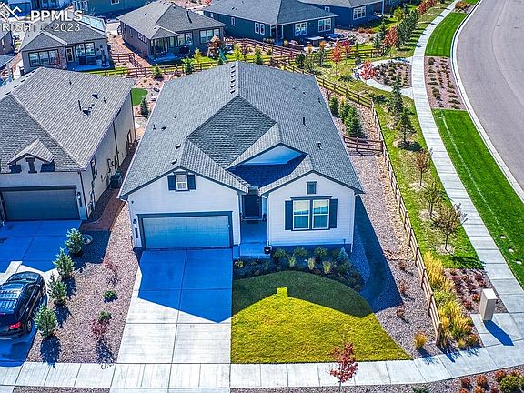 Wonder in Wolf Ranch this 4,602 SqFt 3 Bedroom, 2 Bath 2 Car Ranch Home has all the bells and whistles and steps away from Wolf Lake. Built in 2020 this Turn Key Home is better than brand new with top grade upgrades. Walk into the Home with luxury wood laminate floors into a sprawling open floorplan. This home has everything you need for main level living. The Large Gourmet Kitchen is perfect for the home chef with beautiful shaker cabinets, Extra Large Kitchen Island, Overhead Vent Fan, Rich Granite Countertops, Gas Stove, Built in Oven, Microwave and a Kitchen Pantry. The Dinning-Family Room Combo is perfect for entertaining with a Corner Custom Stacked Stone Gas Fireplace as the focal point. The Master Suite has an attached full bath separated by a Beautiful Barn door with a Super Spa Shower & Walk in Closet. On the Main level you will find two more bedrooms, an office space boasting French glass doors& a second full bath. Off the garage access door is a lovely bench for sitting and storing items and on the left sits the laundry room. There is Plenty of lighting with large windows and recessed lighting throughout. Follow down the finished staircase & open the door to the unfinished basement. The Huge Open Garden Level Basement doubles the home size for wherever your vision takes you. With two bathroom rough outs and one wet bar rough out for future additions. From the dinning area is a walk out to a composite deck to the outdoor oasis. Beautiful Stamped concrete patio, a spectacular gas firepit, salt water hot tub, outdoor solar lighting and show stopping landscaping. Additional storage was added below the deck for all your yard tools. The owner spared no expense on this immaculate oversized corner lot. Located in the award winning master community of Wolf Ranch with trails, open spaces, parks, a swimming pool, community events and more. Well loved and adorned this is truly a DREAM HOME. Schedule your showing TODAY!