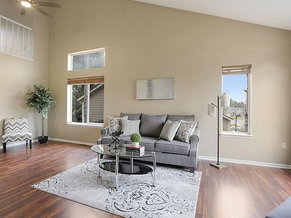 At $175/sq ft this is priced great for this 4 bedroom, 4 bath home with finished basement in a coveted, beautiful community. Entering the front door you are greeted with the sight of the vaulted ceiling and upper loft giving that open feeling. The kitchen has been completed with stainless steel appliances and a fireplace in the living room gives the feeling of 'home'. Upstairs is a loft with closets for extra storage, two bedrooms plus the master bedroom over looks the trees to give the view of the mountains. Downstairs is an open room with a bedroom and bath. The open area basement could be a man/woman cave, movie room, play room or many of your imagination's desires. Low HOA fees. Newer (1-3 years) A/C and furnace, dryer, refrigerator, flooring, and paint.