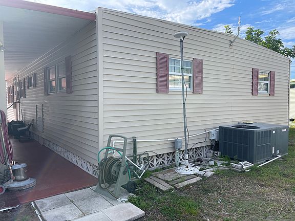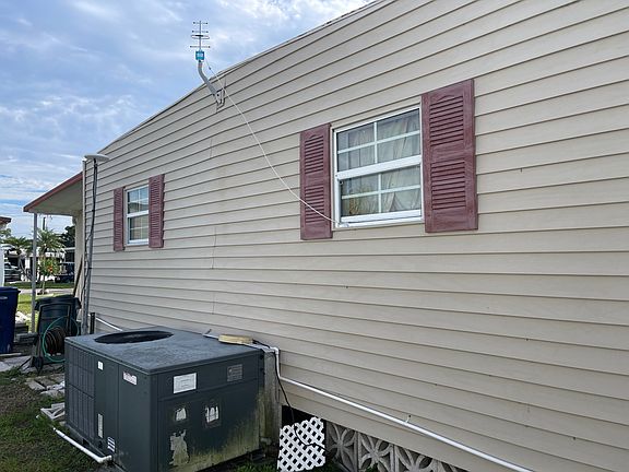 This 1972 doublewide home has two bedrooms and two bathrooms is located in Hawaiian Village, Bradenton, Florida and a nice large corner lot. Hawaiian Village is pet friendly and still has reasonable lot rent! All the major items have been updated in this home. All new double hung windows, vinyl siding, subflooring completed with new laminate, AC and ductwork (still under warranty), membrane roof, kitchen cabinetry and granite counter tops, bathroom shower enclosures, cabinetry and high-rise toilets. All updates done between 2019 - 2021. All interior doors are standard size and updated making for easy accessibility in the home. The home offers an open living room / dining room plan with a large screened lanai. An extra lone driveway with carport also features a storage shed with washer and dryer. All appliances in the home remain. This home is centrally located in Bradenton, just A few miles north of the Sarasota Bradenton International airport and about 15 minutes to Gulf Coast beaches. Hawaiian Village is a land lease, 55+ community with clubhouse, swimming pool, shuffleboard, library and organized activities. Pet friendly. Sub-renting is allowed - please verify details with the community. Lot Rent is currently $630 and includes lawn maintenance. Background check and approval is required. AGENT MUST SHOW BY APPOINTMENT A FULL YouTube video tour is available.