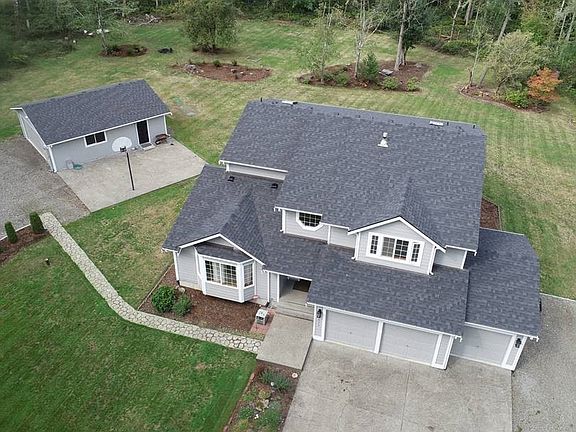 Spectacular 2700 sqft, 4 bedroom (3 bd septic), 2.5 ba home PLUS den/flex room, formal dining room w/tray ceiling, formal living room, spacious kitchen with large island/breakfast bar, lots of cabinets and counter space, separate family room + bonus room! Private 2.27 acres w/beautiful park-like landscaping + shop! Fresh paint, new carpet, large Trex deck w/built-in benches, hot tub, and covered parking for 5 vehicles! Additionally, there is plenty of room to park an RV with a septic connection.