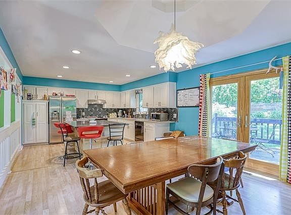 Open and bright F/B split home on heavily treed lot. Gorgeous updated kitchen (2017) with LARGE island, quartz tops, trendy tile backsplash, soft close drawers and pantry. Eating area with french doors leading out to the two tiered deck. Both kitchen and eating area overlook vaulted great room with cool floor to ceiling brick fireplace. HUGE master suite with private full bath and walk-in closet. Nice sized secondary bedrooms. Additional living space in finished lower lever along with half bath and additional room that could be used as a home office or possible non-conforming 4th bedroom. XL two car garage! Newer windows. Upgraded flooring in lower level. New windows - 2017. Don't miss this great home.