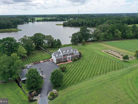 Waterfront Estate - 43.5 Acres featuring an exquisite 5BR/3.5BA 4,770sf custom dream home, inground pool, 846' water frontage on Quantico Creek, private pier, pole barn. Custom estate home exudes comfortable luxury, offers endless amenities. Quality 2x6 construction, geothermal heat - custom upgrades, gorgeous architectural touches and luxe finishes throughout - arched doorways, vaulted and tray ceilings, Palladian windows, marble, tile, 2-story stone fireplace. Columned entrance into the grand 2-story foyer, flanked by round trefoil arches leading into the office/study and formal dining room. Dream kitchen - Cambria Quartz counters, crisp white cabinetry, professional-grade, Wolf, stainless steel appliances. Breakfast nook w/ waterviews. Spacious family room w/waterviews - soaring ceilings, custom stone fireplace, wall of windows / sliders overlooking the pool. Waterfront owner's suite w/tray ceilings, sliders to the patio, double walk-in closets w/built-ins, incredible en-suite bath - oversize custom-tiled shower w/glass surround, soaking tub, double-sink vanity. Half bath and powder room complete the first floor. Upstairs, 3 add'l bedrooms, one with an en-suite bath - custom tile shower, and a 3rd full bath. Huge bonus / game room w/wet bar. 2-car attached garage. Detached 3-car garage / pole barn with finished office/craft/rec space, tons of storage, built-in workshop area. Private oasis for nature enthusiasts - walking trails, tons of wildlife with natural habitats for hunting - two duck ponds, custom-built deer stands. Enjoy boating or fishing from your private 300' pier w/electric & water - 2 slips, boat lift, fish-cleaning station. Rare opportunity to own such an amazing waterfront home and lush grounds.