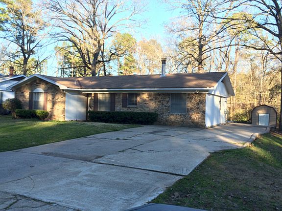3 bedroom 1.5 bath, large laundry room, wood burning fireplace. Furnished with refrigerator, dishwasher, and gas stove / oven. The heating/ air conditioning unit is gas along with the water heater and stove. Drop down laundry shoot, freshly painted rooms throughout. large back yard with storage building