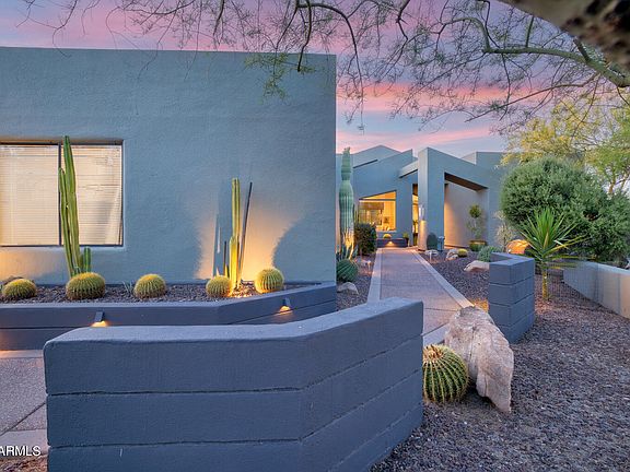 This Architectural Digest Worthy Contemporary has been Artfully Remodeled with No Expense Spared. The Essence of ''Country Living in the City'' only a 1.3 ACRE LOT could Allow. Designer Kitchen & Baths Compliments of Bosch-Monogram and Hunter Douglas Automation. WHOLE-HOME Accent Lighting- Large Format Flooring & TALL Vaulted Ceilings. Multiple Indoor/Outdoor Living/Entertaining Spaces are revealed behind a 150 FOOT Illuminated 10 Car Driveway. A Second Driveway leads to the 800 Sq.Ft. DETACHED- Workshop Featuring 220V Service- Compressed Air- HVAC-Water & ADDITIONAL 2 Car Garage w/Service Lift. STUNNING Desert Landscaping-Walkways & Entertaining Areas Illuminated with Professional Lighting- enhances the VIEWS - Multiple Seating/Dining Areas & Shade Ramadas