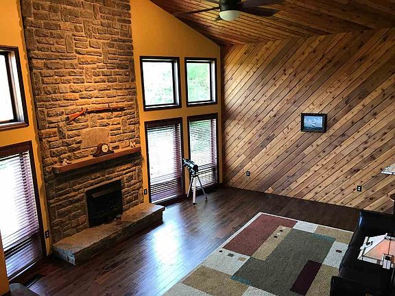 This is a custom built newly renovated 2600 sq. foot home on 7.19 acres with beautiful river views. Country setting only 10 minutes from downtown. The home features a large great room with a custom built stone fireplace. The kitchen, laundry room and bedrooms are situated on the upper floor. Sunroom attached to Master Bedroom. There is also a 29x30 workshop with electric and water available