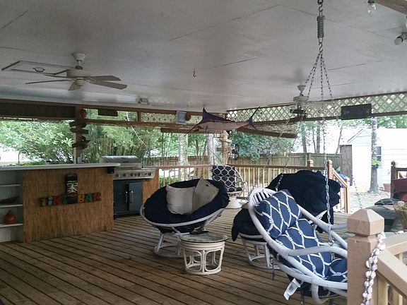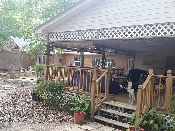 Brick home on quiet cul-de-sac. High & dry, top of hill, no flood insurance needed. Spacious floor plan, high ceilings. Large remodeled kitchen, wood burning fireplace. Enjoy a large parklike backyard with enormous gazebo boasting a 1/2 bath, a bar, counters, cabinets, large two compartment sink, hot and cold water, lighting, ceiling fans, entertainment center with cabinet for 50"+ TV. , furnished w/ papasan chairs and hanging rattan chairs and more. Large covered patio connected to gazebo with a brand new large wood deck. Large double garage w/workbench and storage cabinets. Two large sheds perfect for storage, workshop, man cave or she shed. appliances are included: refrigerator, deep freezer, microwave, glass top slide in stove, dishwasher, disposer, large deep kitchen sink, also he front load washer and dryer with pedestals. ceiling fans in every room. recessed lighting in kitchen, living room, dining and master bath. roomy master bedroom, plenty room for king sized bed. master bath has double sinks, large Roman tub, separate shower, very large walk in closet. and much more. Must see to appreciate.