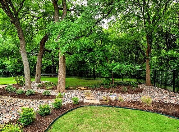 Prestigious custom estate located in the extremely exclusive & gated community of Kings Gate. This uniquely private property is one of less than 50 homes & is situated on a heavily wooded, .74-acre creek lot! Timeless, French-style craftsmanship w modern appointments of luxury abound at every turn w gorgeous lighting, gleaming marble floors, rich hardwoods & floor to ceiling windows to enjoy the breathtaking views of the lush creek, infinity pool & greenbelt! Updated chef's kitchen, 4 living areas, private owners suite plus guest suite down. 2nd floor is over the west side featuring 3 bdrms w in-suite baths & walk-in closets! Storage is amazing! Minutes away from DNT & SR121! Convenient to work, dine & shop!