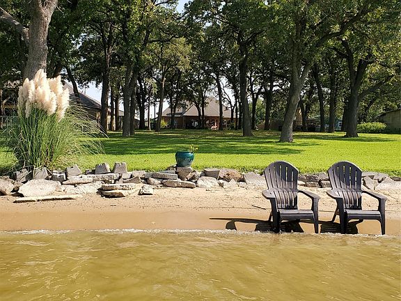 Beautiful WATERFRONT home on 1.4 acres with a boat dock and awesome open water views. FUN neighborhood. Your own sandy beach! (see pic) Granite countertops and stainless appliances. 3-2-3 +Office. +Game room is only room upstairs. (either can be converted to 4th-5th bedroom) Covered porches. Tile flooring. Bay windows. High ceilings. Sprinkler system. Dock with lift. WBFP. High quality build with excellent attic-roof radiant barrier.