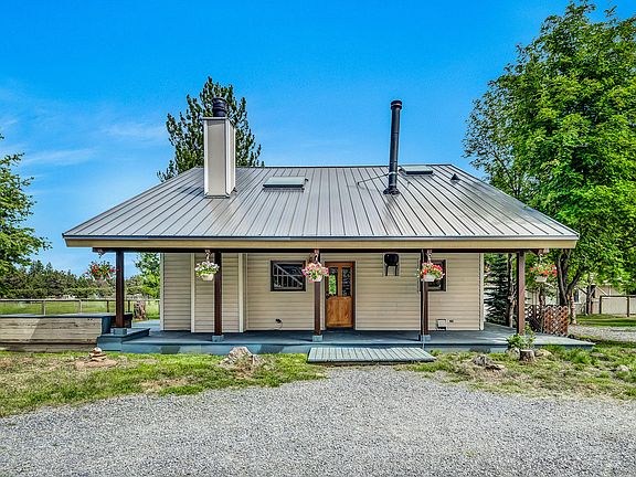 Clean, cross fenced, horse property w/4 acres of TID irrigation & stunning mountain views! Cozy farmhouse with hardwood accents, ship lap walls, new paint, new metal roof. Updated kitchen w/concrete counter tops, tile backsplash, and vintage wood burning cook stove. Main floor bedroom w/full bath, upstairs has loft/office area, two bedrooms + full bath (with sauna!). Detached single car garage, two stall barn w/small tack room, chicken coop, new fencing and private gated driveway. Relax in the hot tub while watching the sunset over the Three Sisters! Ah, the Tumalo Life!
