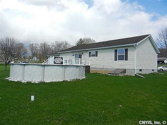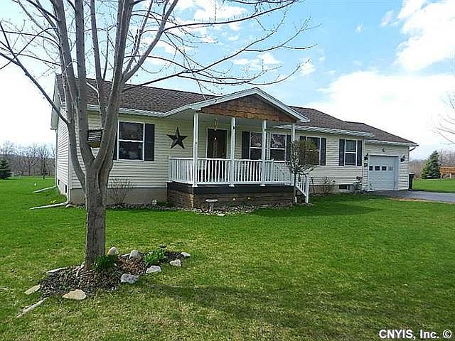Just outside city limits this gorgeous ranch boasts an open floor plan with spacious eat-in kitchen, cozy living room and ceramic tile mudroom with easy access to garage. There is a large master bedroom featuring a walk-in closet and private bath with stand up shower. The full walkout basement is partially finished and is plumbed for a third bathroom. Outside is a large deck that overlooks a good sized yard with an electric pet fence. Stay cool in the summer with central air and enjoy the convenience of sewer, natural gas and public water. Taxes do not reflect star exemption ($461.69)